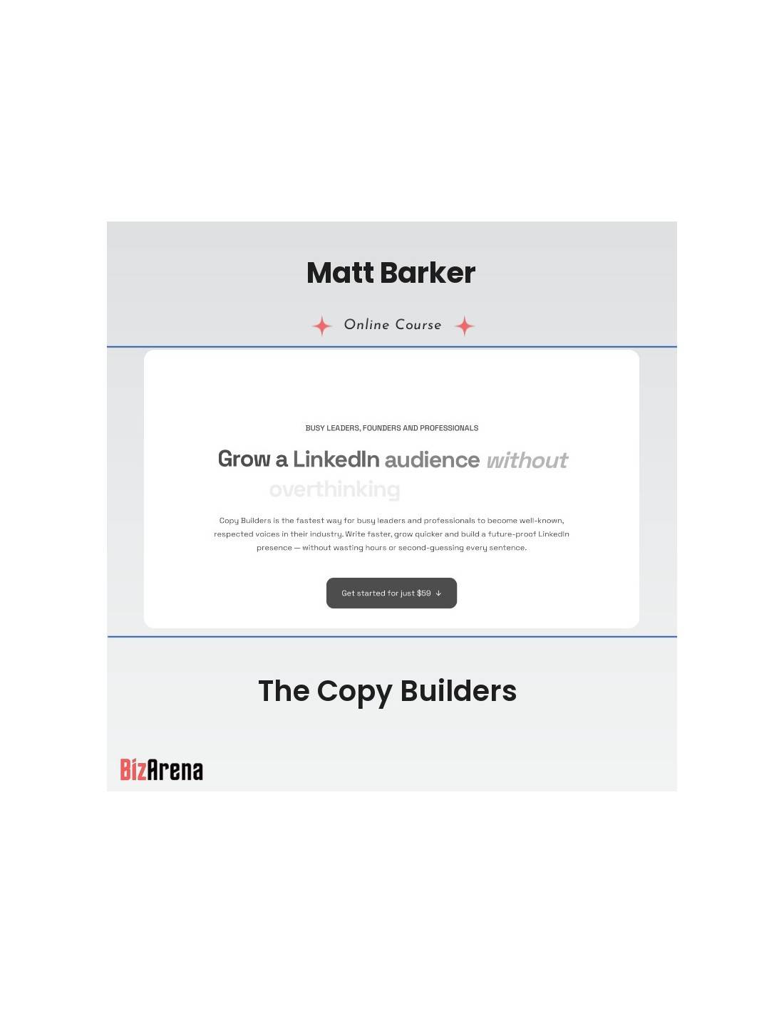 The Copy Builders is the ultimate solution for busy professionals, founders, and leaders who want to build a powerful LinkedIn presence without spending hours crafting each post. Created by LinkedIn growth expert Matt Barker (167,000+ followers), this comprehensive program delivers a proven system for consistent, engaging content that attracts opportunities and builds your professional reputation.Transform Your LinkedIn Strategy in Record Time